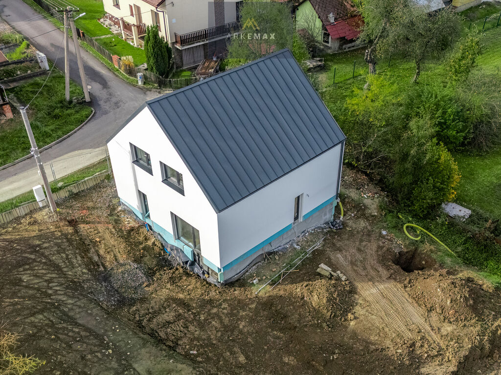 Cena 10,7 milionu Kč je konečná – zahrnuje kompletně dokončený dům včetně kuchyně, sanity, oplocení, terasy, parkovacího stání a srovnané, ohumusované zahrady.