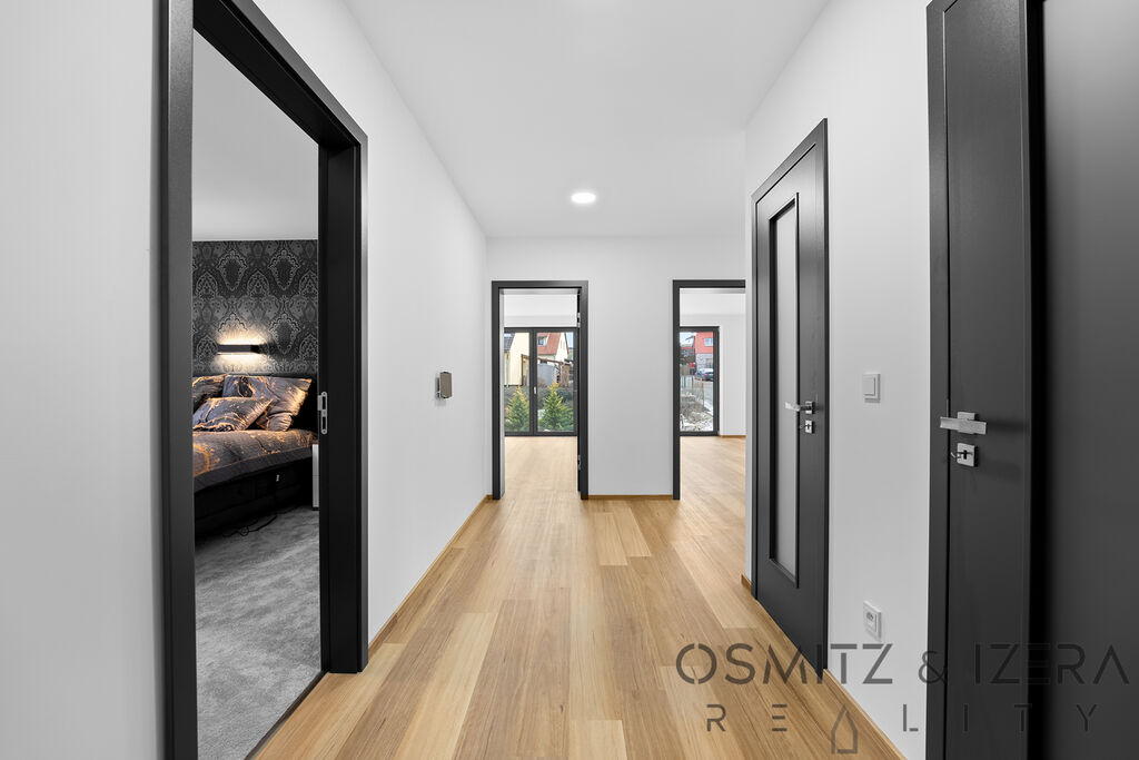 Součástí nemovitosti je také prostorná garáž a parkovací místa pro návštěvy či další automobily. Dům je nízkoenergetický, což zajišťuje nízké náklady na provoz, PENB má hodnotu B.