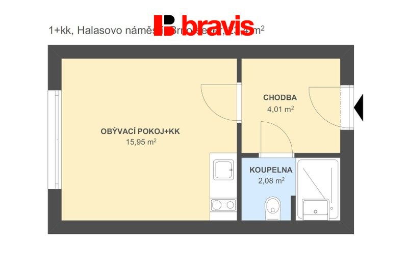 Ve výhradním zastoupení majitele Vám nabízíme k prodeji byt o dispozici 1+kk o užitné ploše 23,4 m², který je situován ve 12. patře revitalizovaného panelového domu na ulici Halasovo náměstí, v srdci žádané městské části Brno – Lesná.