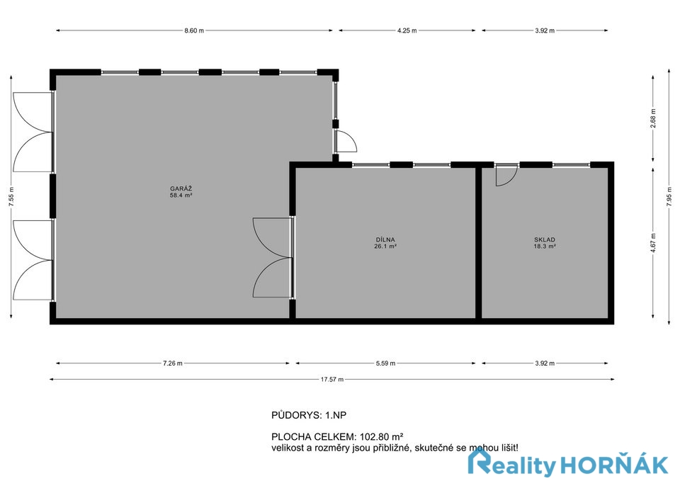 Nabízený rodinný dům je vystavěn na vlastní stavební parcele o výměře 106 m2, obklopené vlastní okrasnou zahradou 1813 m2 se skleníkem, pěstebními záhony a malým jezírkem. Do zpevněné, vydlážděné plochy za domem je zapuštěn kruhový bazén s pískovou filtrací. Při okraji zahrady je vyměřena další stavební parcela (111 m2), která je zastavěna celozděnou autodílnou (s velkými vjezdovými vraty, montážní jámou a půdou pro skladování sezónních věcí), navazujícími garážemi a garážovými stáními. Vlevo od nové vjezdové brány s brankou najdeme šikovný roubený sklad zahradního nářadí s přístřeškem na palivové dříví a káru za auto.