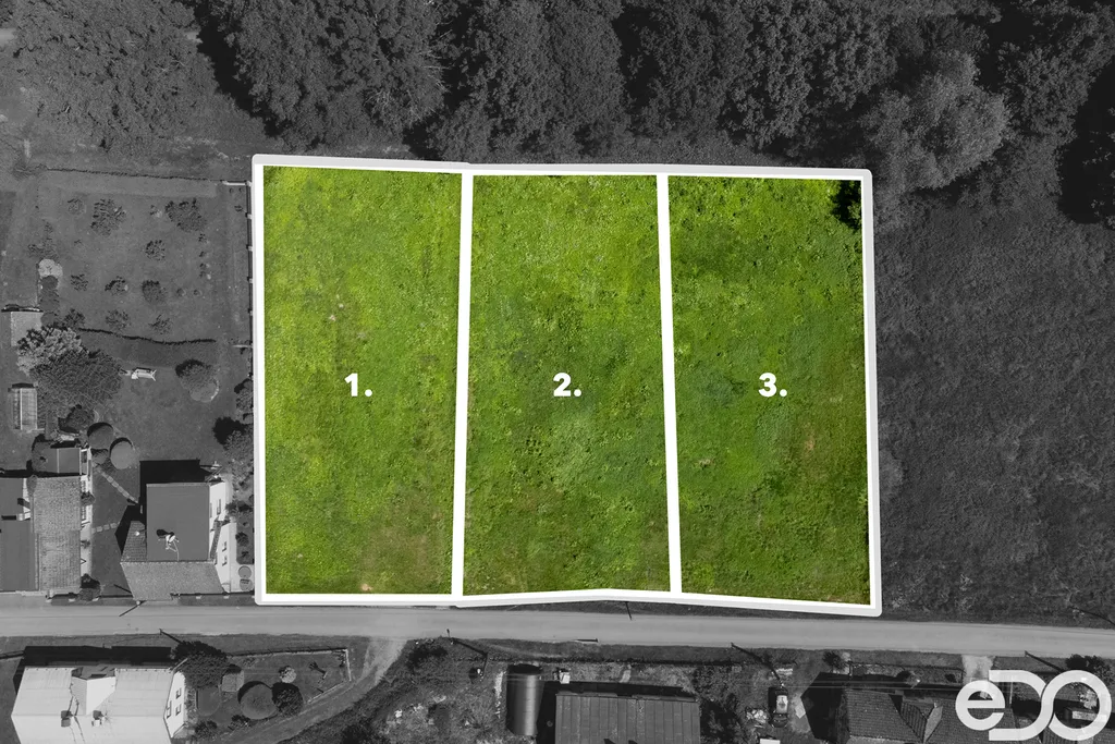 Výměry jednotlivých pozemků jsou 873 m², 897 m² a 929 m².