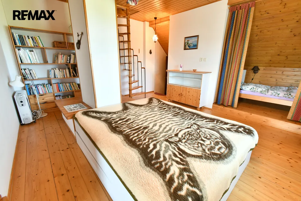 Na zahradě jsou okrasné dřeviny a ovocné stromy. Za domem je přístřešek na dřevo či zahradní náčiní. Navazující pozemek o rozloze 3 849 m² je využíván jako louka. Další možnosti – k pěstování, chovu zvířat, rekreaci či pronájmu.