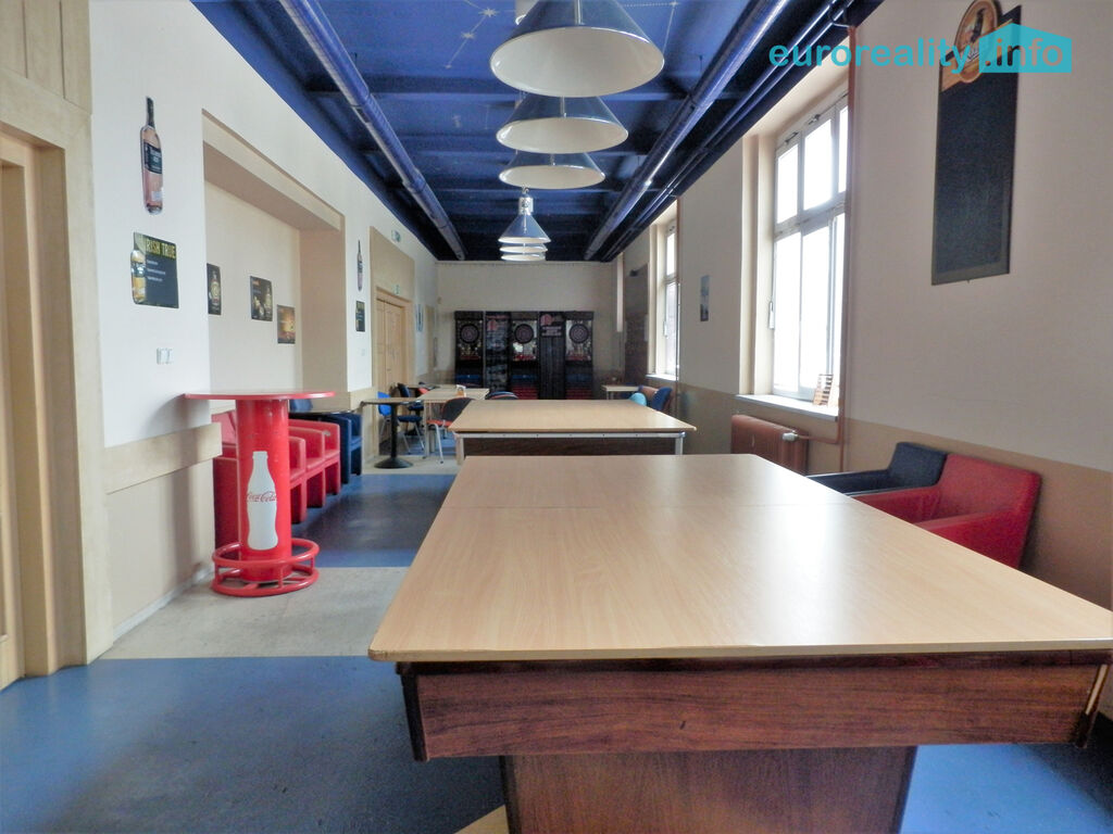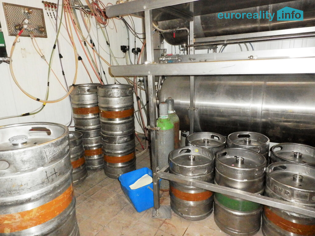 Součástí pronájmu restaurace je suterén 60 m2 s chladícím boxem a skladem zeleniny. V prvním patře pak kancelář, toalety, šatna a půda, celkem 30 m2.