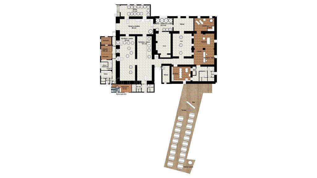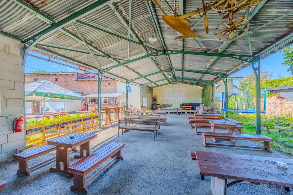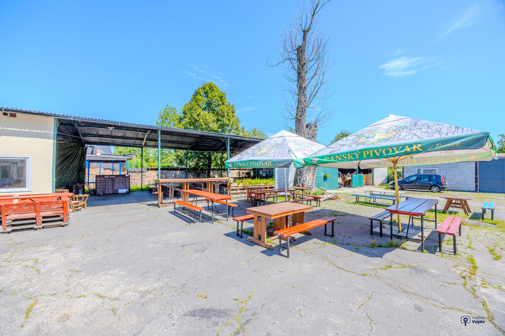 - Venkovní zahrádka s posezením pro prodej piva a občerstvení v teplých měsících