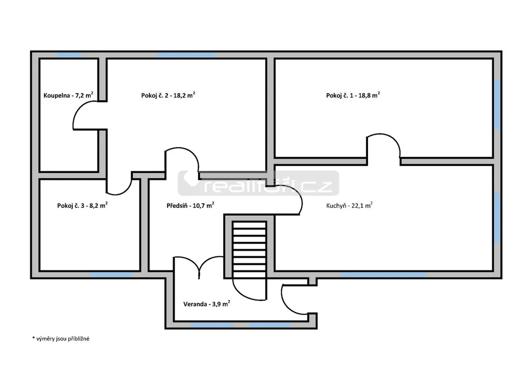 ✔ Tři prostorné pokoje, z nichž jeden má také kachlová kamna s plotnou.