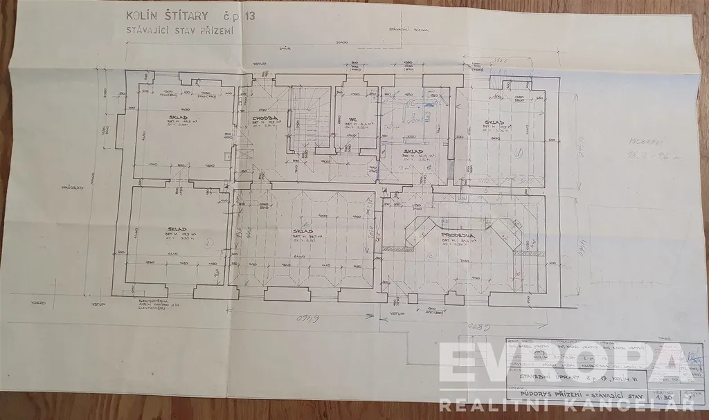 c) prodejna – 6,8 x 4,46 = 30,3 m²