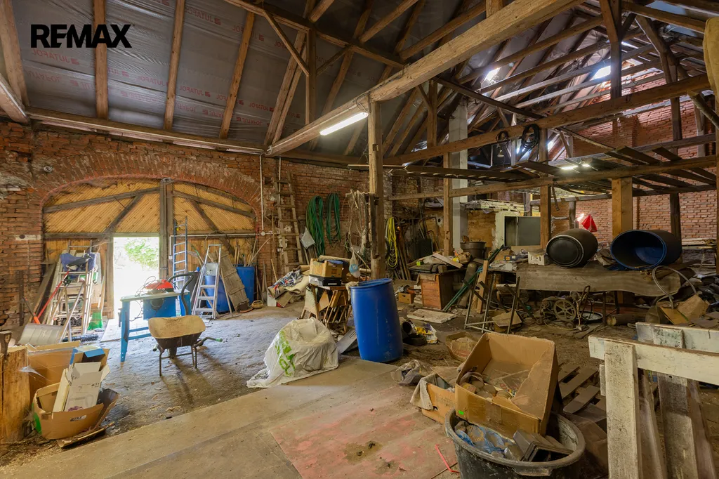 Na pozemku se dále nachází samostatně stojící patrová stodola, která nabízí možnost vytvořit stylový vejminek, venkovský apartmán pro hosty, prostor pro workshopy, nebo třeba malou galerii.