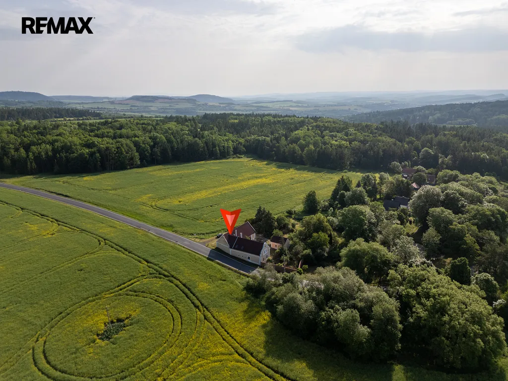 Celý pozemek má 1 135 m², je zde velká zahrada s ovocnými stromy, vrtaná studna a vlastní LPG zásobník. I když se nemovitost nachází kousek od dálnice, je schovaná za lesem na okraji obce, v nádherné přírodě plné klidu a zpěvu ptáků. Tato usedlost je srdeční záležitost – ideální pro rodinné bydlení, ale i jako investiční příležitost pro podnikání na venkově.
