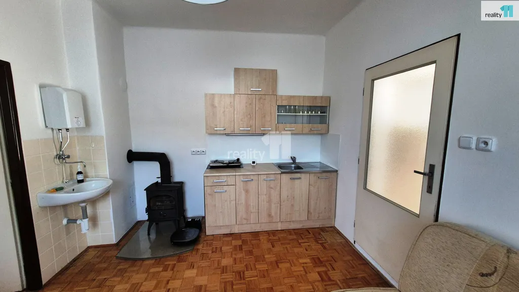 V domku ze vstupní chodby vejdeme do kuchyňky s kuchyňskou linkou, následně do jednoho pokoje. Dále z chodby do dalšího pokoje a z něho do koupelny. V horním patře možnost vybudování dalšího pokoje.