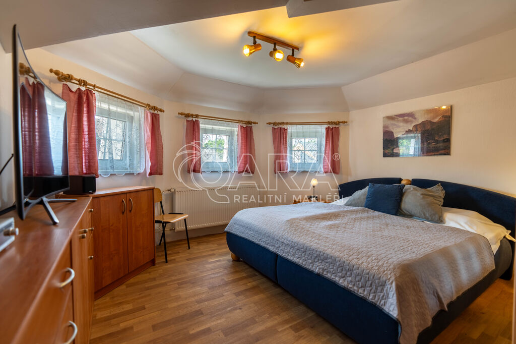 • Podkroví: dva ložnicové pokoje a druhá koupelna se sprchovým koutem