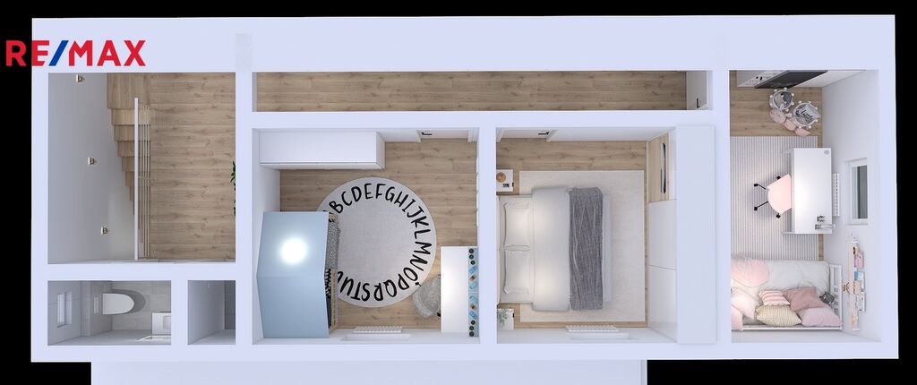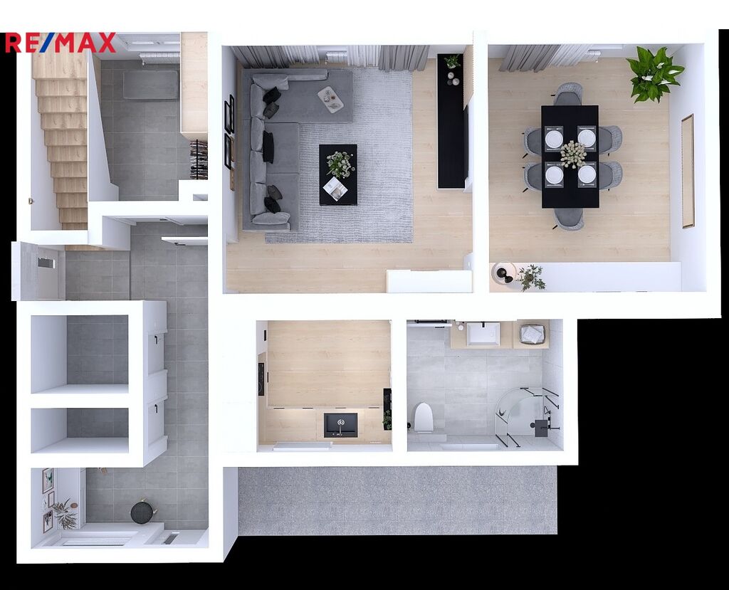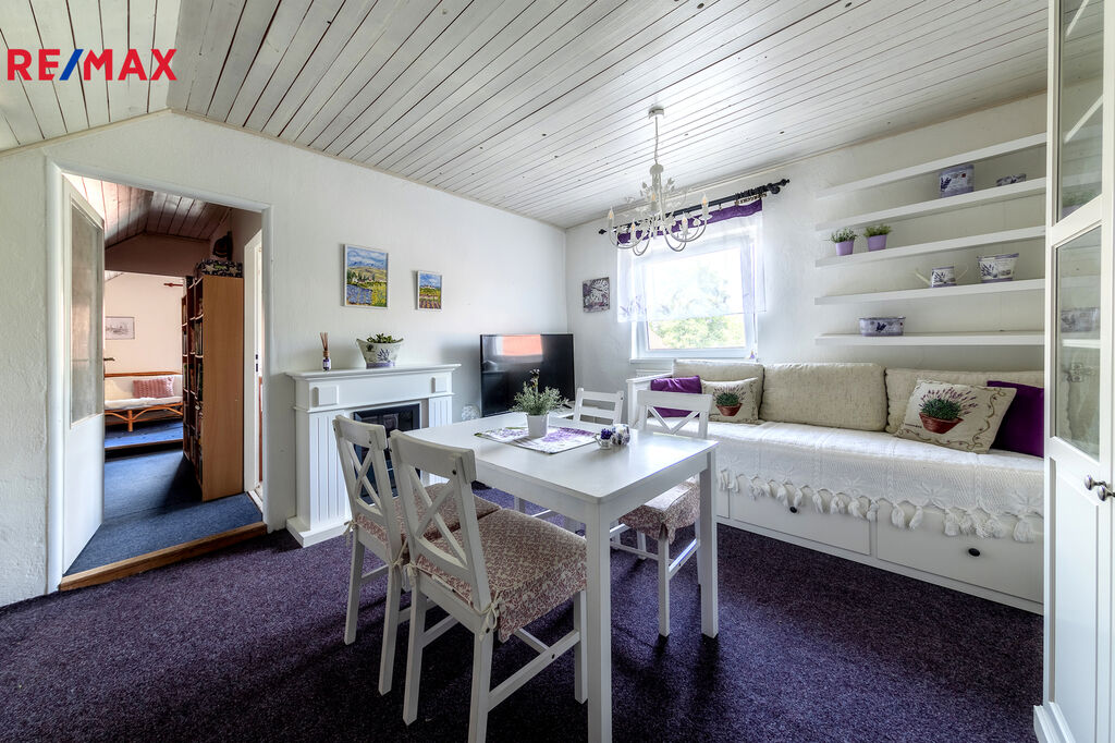 Dům má dva vstupy, které mu okamžitě dávají vícegenerační či praktickou tvář. V přízemí vás přivítá společenská zóna s přímým vstupem na terasu – skvělé místo pro ranní kávu, letní večery nebo posezení s přáteli. Dále se v přízemí nachází kuchyňská část se spíží, obývací pokoj, ložnice a koupelna s toaletou. V patře na vás čekají tři světlé pokoje a druhá koupelna.