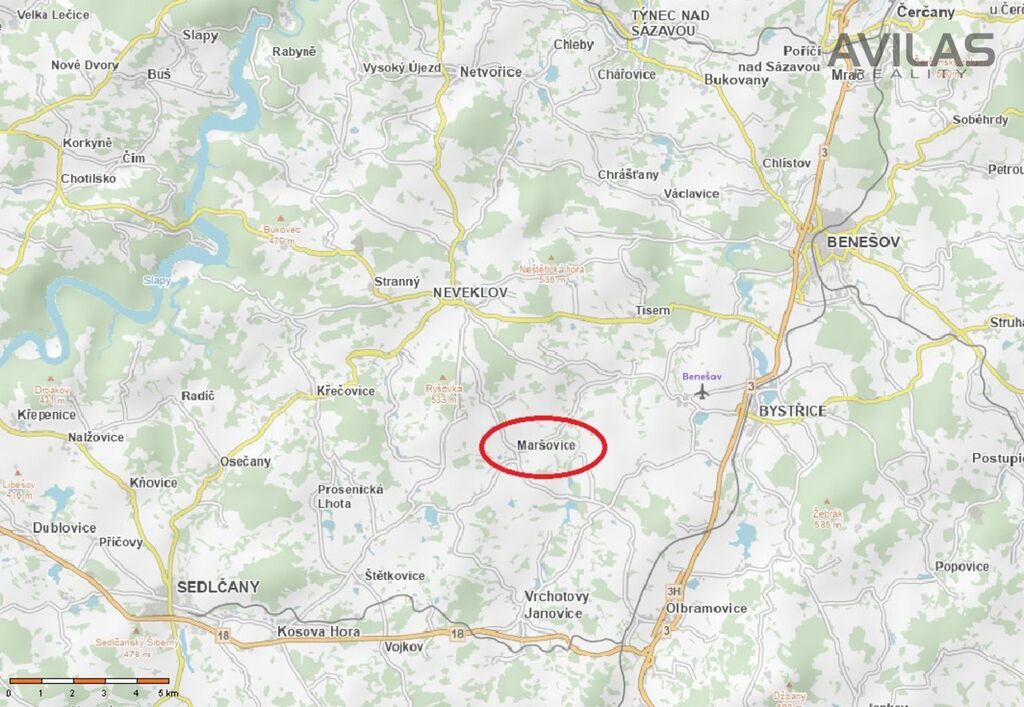 Nemovitost se nachází v blízkosti přírody v oblasti Neveklovska nedaleko Slapské přehrady. Veškerá občanská vybavenost - ZŠ, MŠ, úřady, pošta, obchody, restaurace, sportovní a kulturní vyžití se nachází v Neveklově - 5 km nebo v Bystřici - 9 km. Maršovice - Praha - Metro Opatov ( 50 km ). V případě zájmu Vám zdarma zprostředkujeme sjednání hypotéky. Více info v RK.