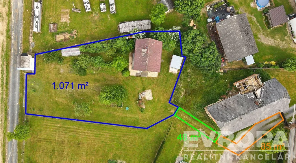 K nemovitosti patří také velká oplocená na jih orientovaná zahrada s plochou 1.023 m², ideální pro rodinné aktivity a relaxaci v přírodě. Na zahradě je 11 ovocných plodících stromů (jabloně, hrušeň, třešeň), 8 ovocných keřů (rybíz, angrešt, borůvky), skleník 10 m², udírna, většinu plochy tvoří trávní porost. Na zahradě stojí dřevěná kůlna. Jedinečnost této nabídky spočívá v tom, že zde je možnost současně pořídit barokní kapli 15,5 m² přímo sousedící se zahradou. Není to však podmínkou.