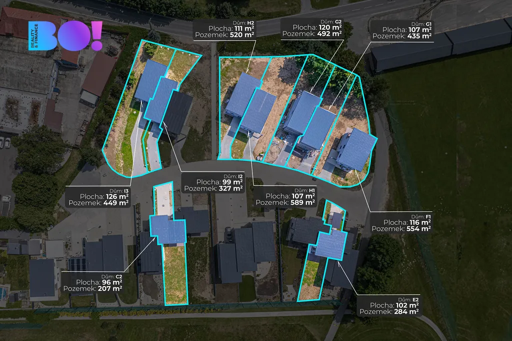 Každý dům se mírně liší podlahovou plochou, dispozičním řešením a velikostí zahrady, všechny ale splňují potřeby moderního bydlení. Ještě si tedy můžete vybrat přesně ten dům, který bude vyhovovat nejlépe Vašim potřebám.