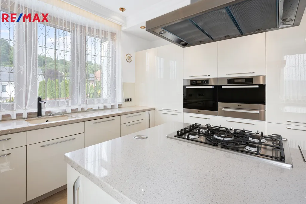 V přízemí domu vás přivítá prostorný obývací pokoj s krbem a přímým vstupem na terasu, kde si můžete vychutnat klidné ráno i večery plné pohody. Kuchyně, vybavená špičkovými spotřebiči Miele, je snem každého, kdo miluje kvalitu, design a funkčnost.