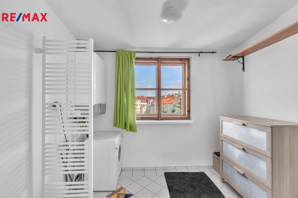 Dispozice bytu tvoří prostorný obývací pokoj s kuchyňským koutem, koupelna se sprchovým koutem, samostatné WC a předsíň. Díky své výměře je možné byt upravit i na menší 2+KK. Vhodné jak k bydlení, tak i jako investice k pronájmu. V současné době je možnost mít i zaběhlého nájemníka.