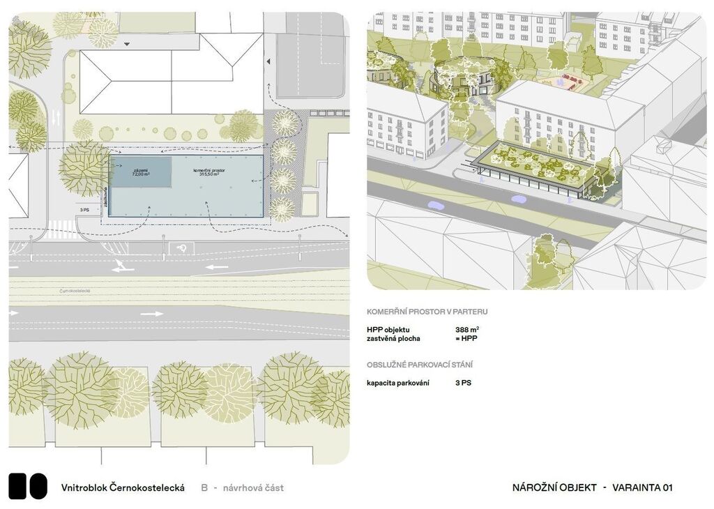 V tento okamžik je k dispozici několik studií možné zastavitelnosti pozemku. Studie byly konzultovány s Institutem plánování a rozvoje (IPR).