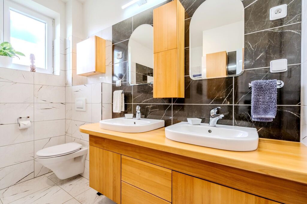 Kuchyňská linka značky EGGER zhotovená na míru je vybavena spotřebiči značky BOSCH – indukce, mikrovlnná trouba, digestoř, trouba, pračka, myčka, lednice. Veškerá okna s ventilací jsou kryta sítí proti hmyzu a to včetně dveří na terasu. Velmi příjemná je orientace oken na sever /jih/východ, kdy je v celém bytě opravdu hodně světla. Kromě dlažby je ve zbytku interiéru vinylová podlaha zn. EGGER a v zimních měsících určitě oceníte podlahové vytápění v celém přízemí a horní koupelně. V ložnicích jsou pak deskové radiátory. Vytápění a ohřev vody je řešen elektrokotlem značky Protherm a požadovanou teplotu v prostoru lze nastavit na nástěnném termostatu.
