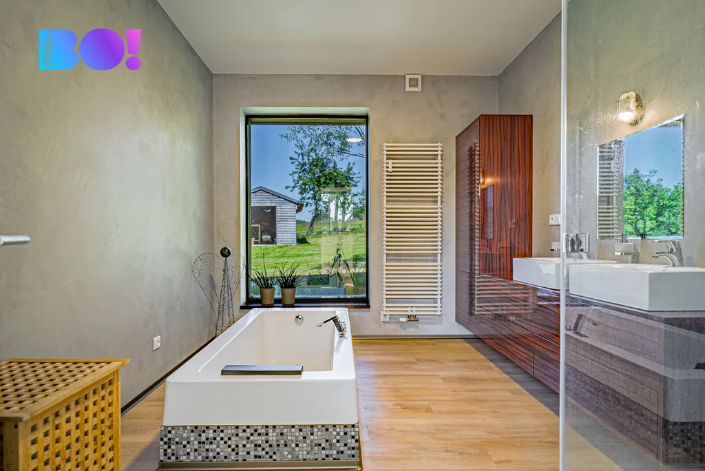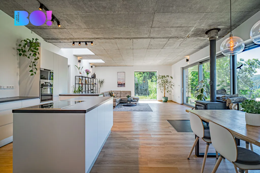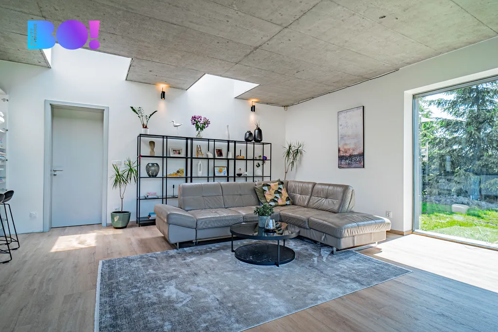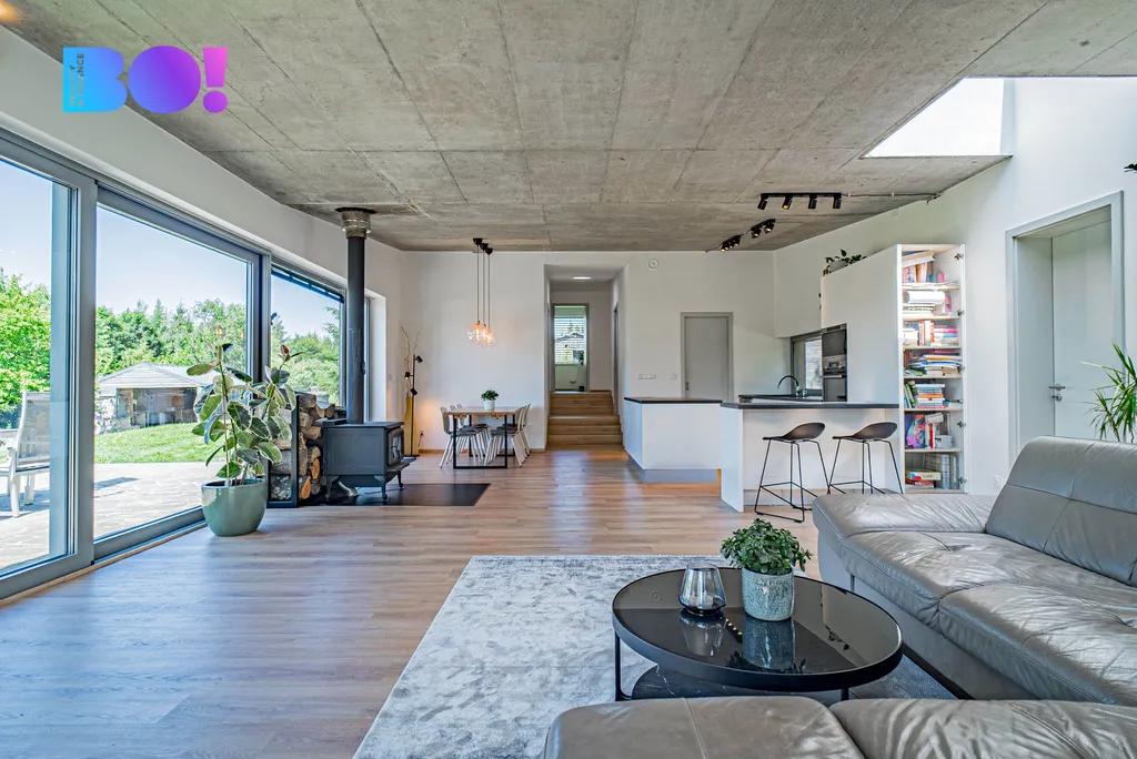 Dům nabízí velmi komfortní dispozici 6+kk – se zaměřením na otevřenost a propojení s exteriérem: