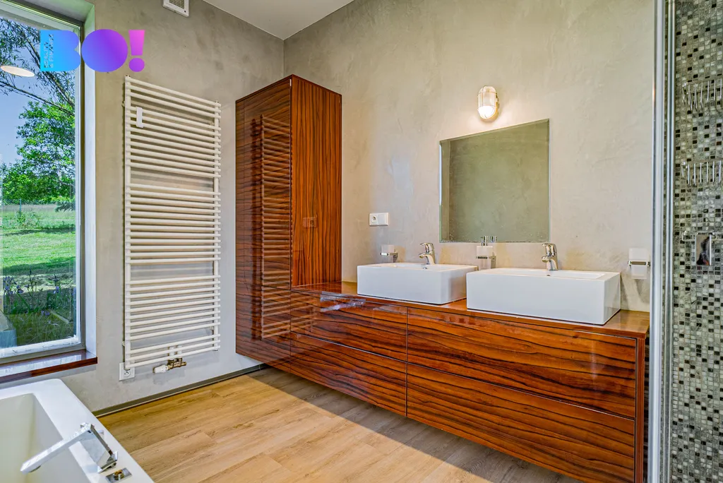 Každý detail interiéru je navržen s důrazem na světlo, jednoduchost a funkčnost. Dům je zároveň snadno udržovatelný, úsporný a připravený na celoroční užívání – jak pro trvalé bydlení, tak jako luxusní víkendová rekreace.