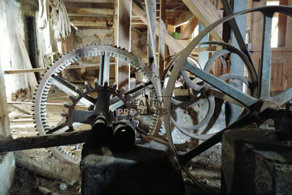 Tři patra původní mlýnice s dochovanými dřevěnými konstrukcemi, převody a technikou