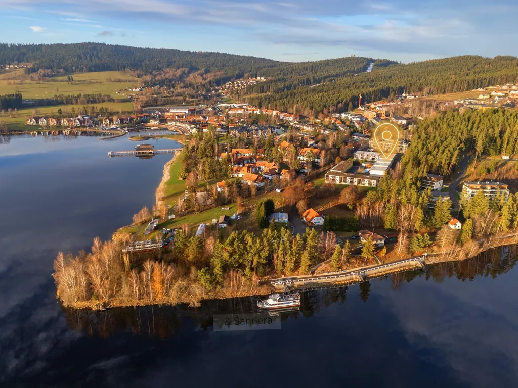 Byt s větší terasou s otevřeným výhledem na Lipenskou přehradu a do přilehlého i vzdáleného okolí, k bytu náleží samostatná skladovací komora, umístěna vedle bytu a užívací právo k užívání společných prostor komplexu – rozsáhlý pozemek, bazén, dětské hřiště, sauna.