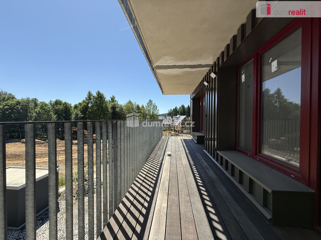 Pronájem světlého apartmánu 1+1 s šatnou a terasou – Vitality Residence, Harrachov (44 m² + terasa 8,5 m²)