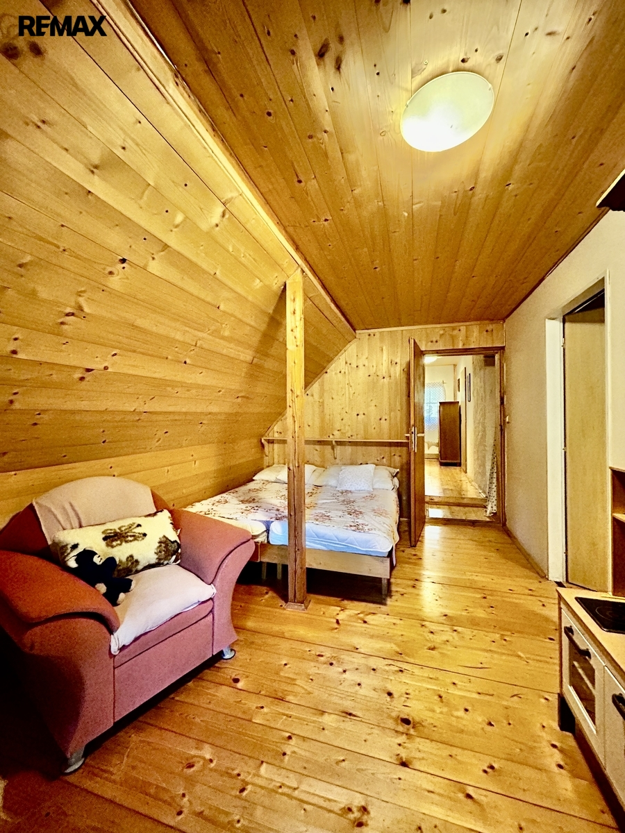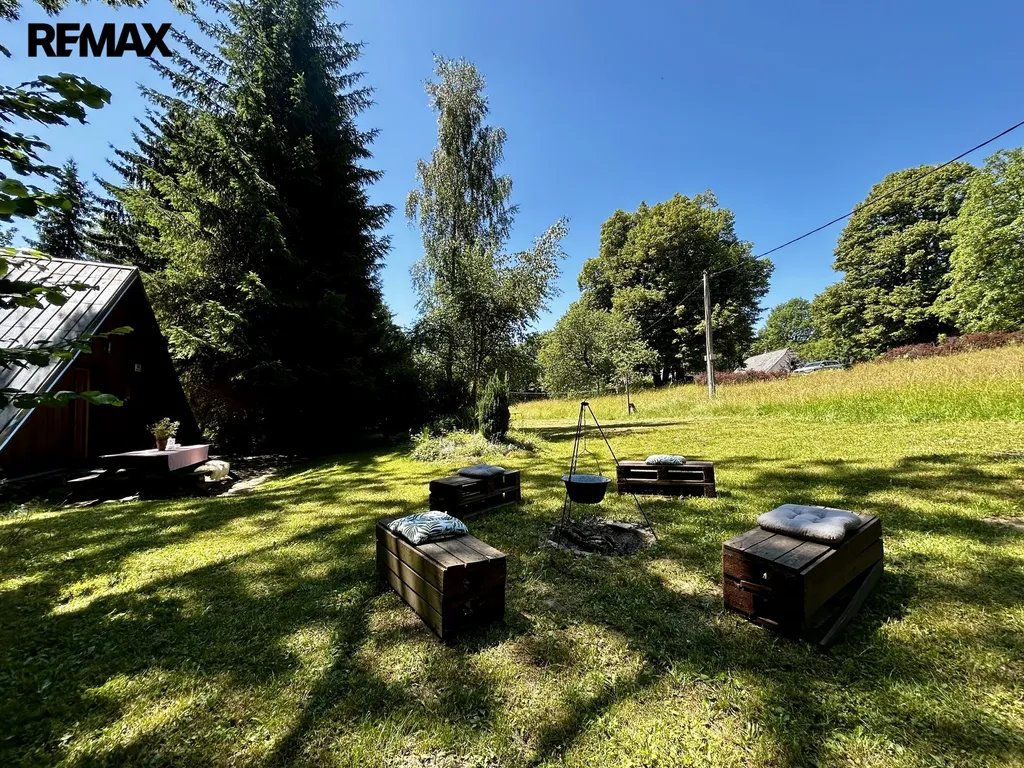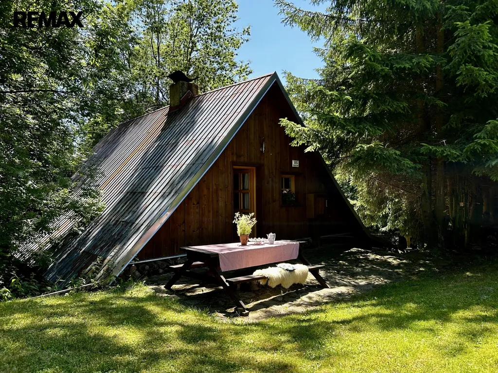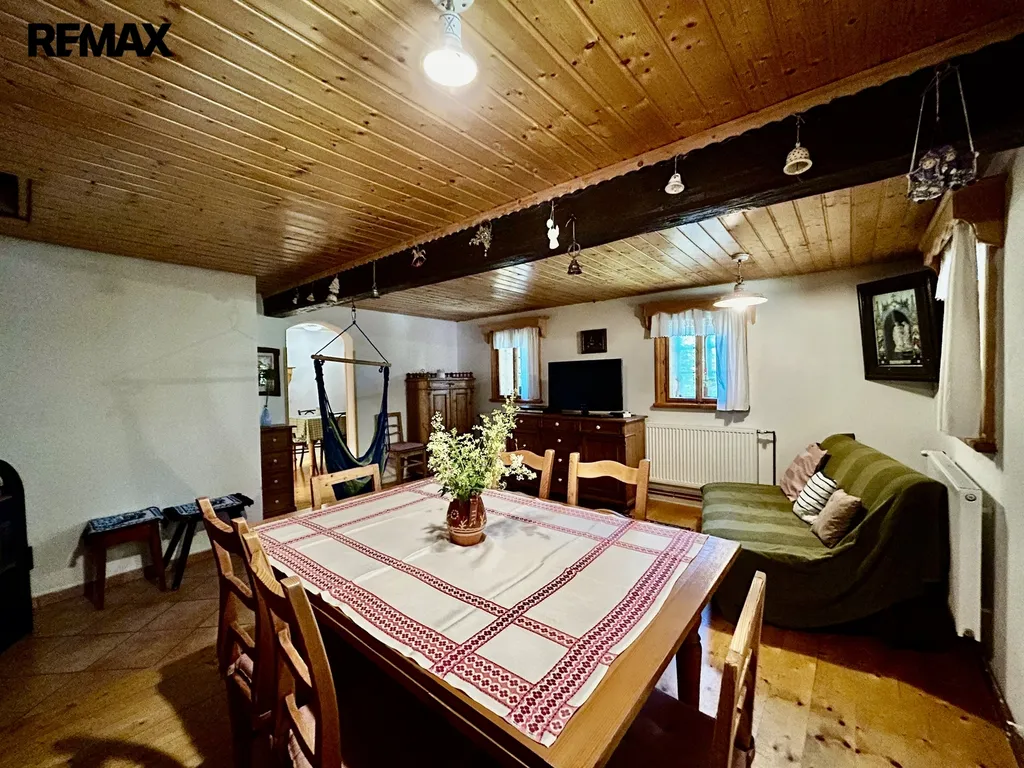 Zrekonstruovaná chalupa stojící v klidné části obce, kde je zajištěno soukromí díky velkému pozemku (louka, les). K dispozici je venkovní terasa s grilem, zahradním nábytkem, dětská houpačka, pískoviště, hřiště na volejbal nebo nohejbal, bazén. Nemovitost se skládá z přízemí a patra. V přízemí se nachází plně vybavena kuchyně, obývací pokoj, koupelna a technická místnost. Dále je k dispozici lyžárna (popř. uložení kol). Dubové schody vedou do salonku prvního patra, kterým je možnost vstoupit do 4 ložnic a vestavěného patra pro dvě osoby. Chalupa poskytuje ubytování pro 6 osob ve 4 ložnicích. Nemovitost lze využít k soukromému bydlení nebo jako investiční příležitost k pronájmu, vzhledem k tomu, že je celoročně obyvatelná a přístupná.