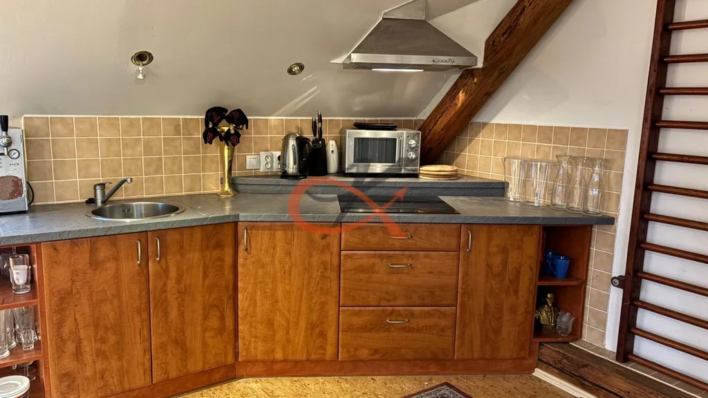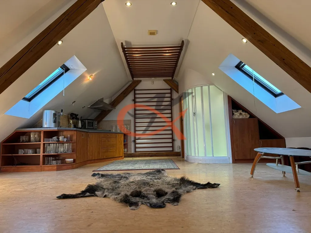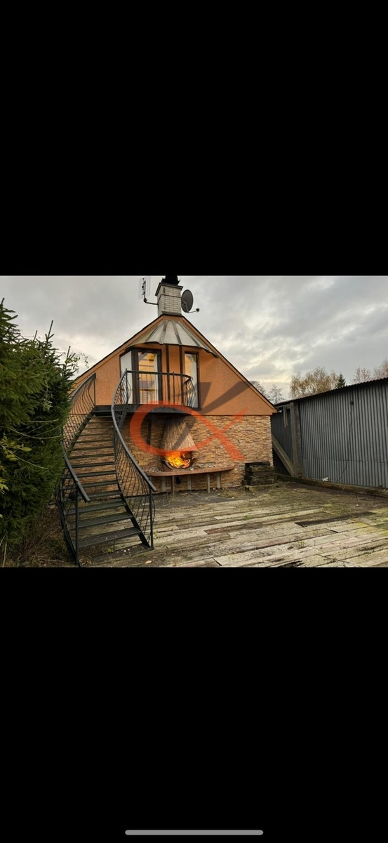 Dispozice : Obytné podkroví 1+kk ve 2.NP s kompletním sociálním zařízením a plně vybavenou kuchyňskou linkou, vytápění zajištěno krbem s vložkou, podlahová plocha 56m2 , v 1.NP stavby je možnost dokončení další místnosti o celkové podlahové ploše 66 m2 dle Vašich představ. Na pozemku se dále nachází venkovní krb a dostatečný prostor pro posezení.