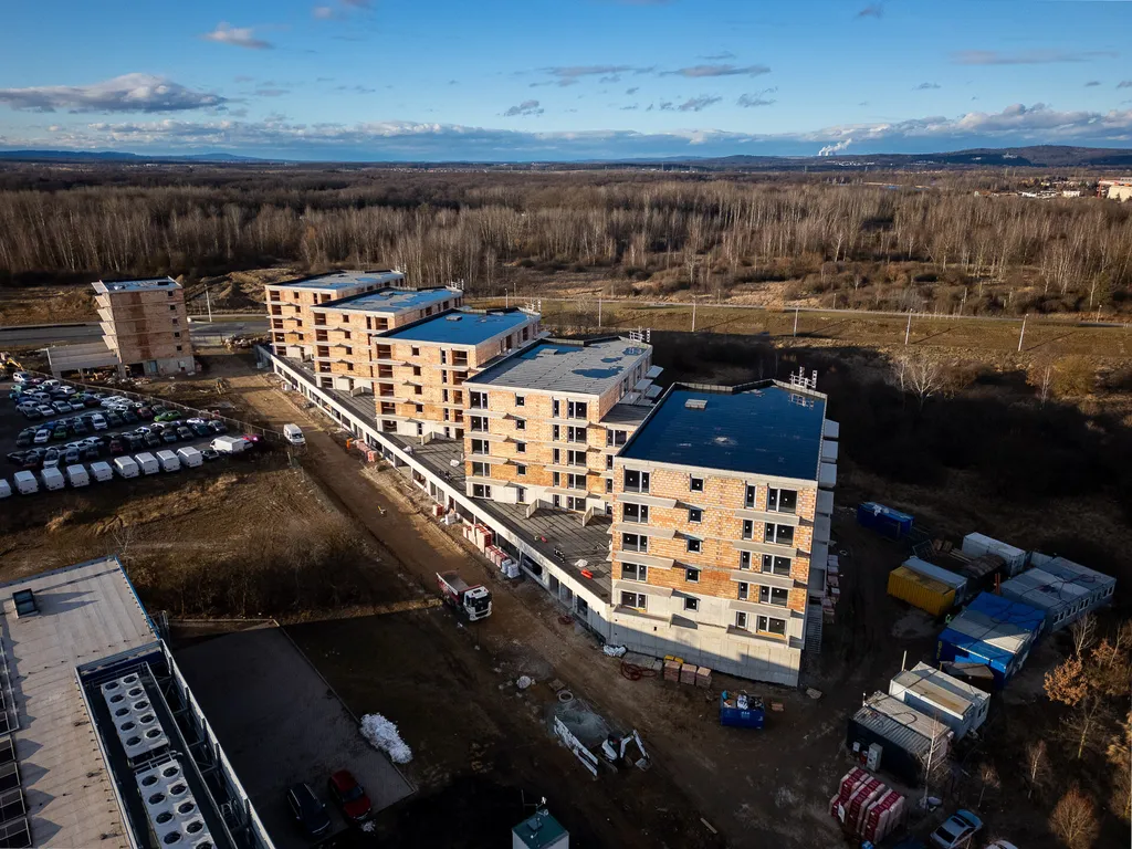 Nabízený byt v této inzerci je dispozice 2 + kk o výměře 50,85 m2 a jeho příslušenstvím je luxusní terasa 16,53 m2, která je unikátně propojena s venkovním prostorem plného zeleně. Byt č. 3.2.3 se nachází ve 2. NP šestipodlažního bytového domu s výtahem BYTY 4 DVORY, sekce 3. Předpokládaný termín dokončení stavby je prosinec 2025. Dispoziční řešení bytu: ze vstupní chodby (5,16 m2) je přístupná koupelna (5,48 m2). Vstupní chodba umožňuje umístnění vestavěných skříní. Z chodby je dále přístupný obytný prostor (24,65 m2) s prakticky řešeným kuchyňským koutem. Obytný prostor je krásně prosvětlen velkou okenní sestavou. Ložnice (12,49 m2) je přístupná z obytného prostoru. Na terasu (16,59 m2) je přímý vstup jak z obytného prostoru tak z ložnice. Celý byt je orientován na východ. Standardní vybavení bytu: kvalitní zařizovací předměty koupelny (sprchový kout, umyvadlo, toaleta, přípojka pro pračku), obklady, dlažby, vnitřní dveře a podlahové krytiny.
