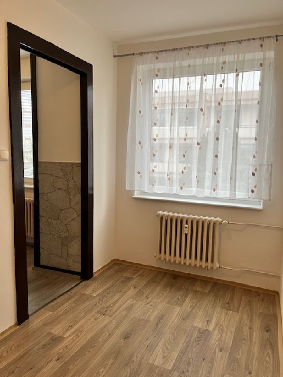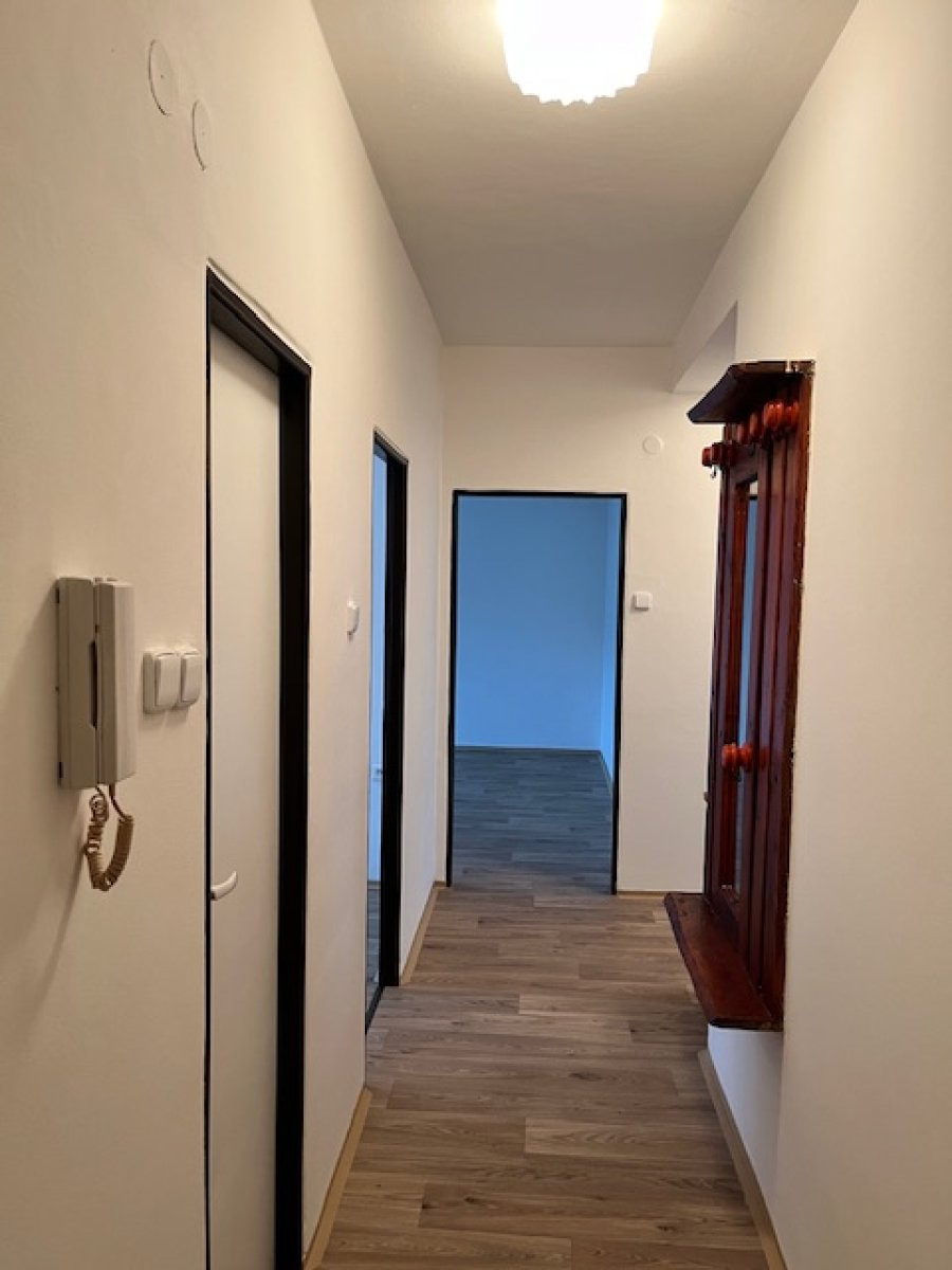 Byt je nově po rekonstrukci, kuchyně je vybavena kuchyňskou linkou s kombinovaným sporákem a digestoří. Je zde také vysoká skříň na uložení potravin. Otevřeným průchodem je kuchyně oddělena od jídelny, kam se pohodlně vejde i větší stůl se židlemi. Pokoje jsou nezařízené. Z obývacího pokoje vstupujete na balkon, z dalšího pokoje potom na prostornou lodžii. V koupelně je vana, umyvadlo, přípojka na pračku, a dostatek prostoru na odkládání věcí. Toaleta je umístěna odděleně.