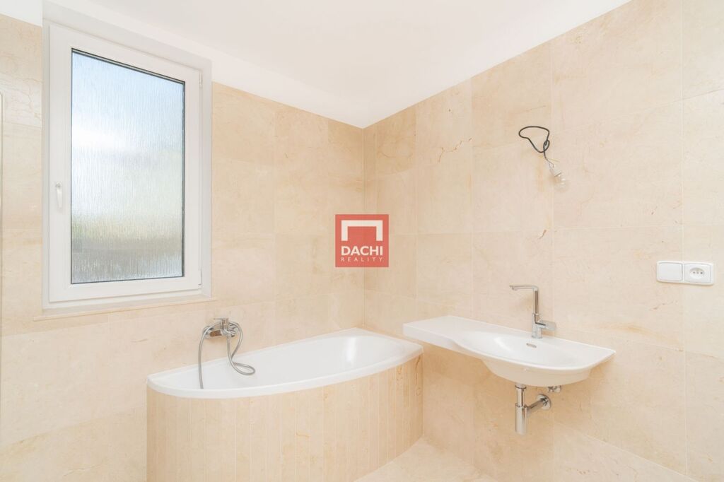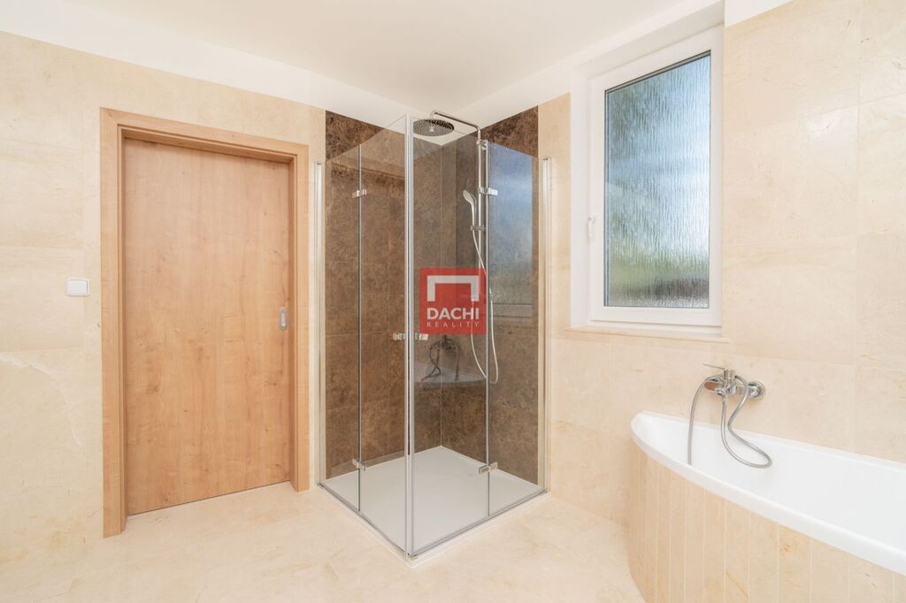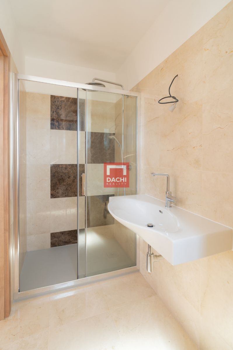 Druhá koupelna s WC a sprchovým koutem mramorový obklad a sanita Laufen