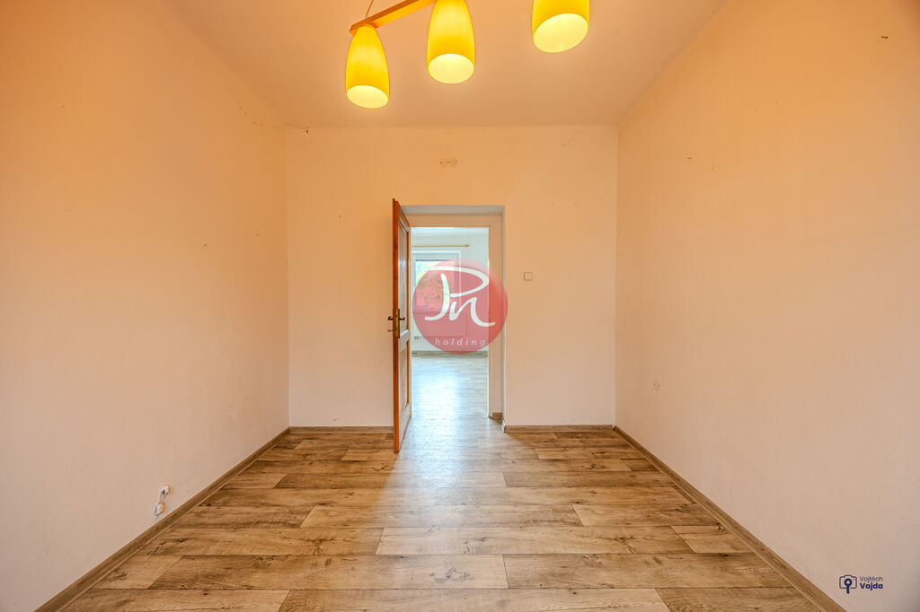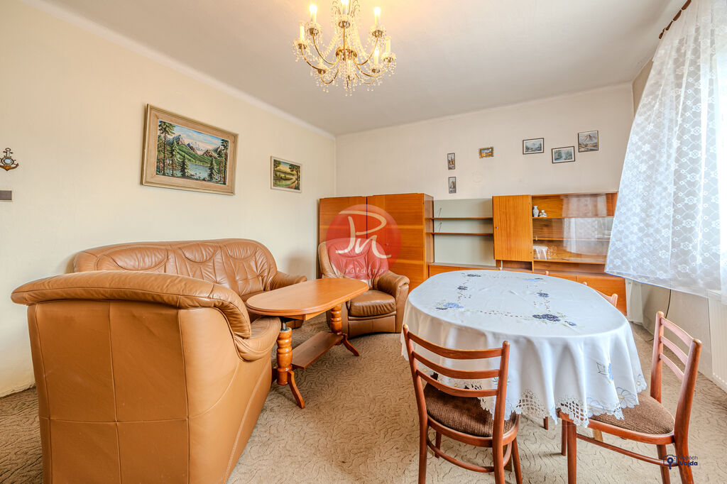 Každá jednotka má dispozici 3+1, tedy tři pokoje, kuchyni a koupelnu s toaletou. Obytné části jsou zcela oddělené, což zaručuje soukromí a flexibilitu. Podkrovní pokoj navíc může sloužit jako pracovna, ateliér, knihovna nebo klidná zóna na relax. Celý dům je v původním stavu a čeká na rekonstrukci – vy si tak vše přizpůsobíte přesně podle svých potřeb.