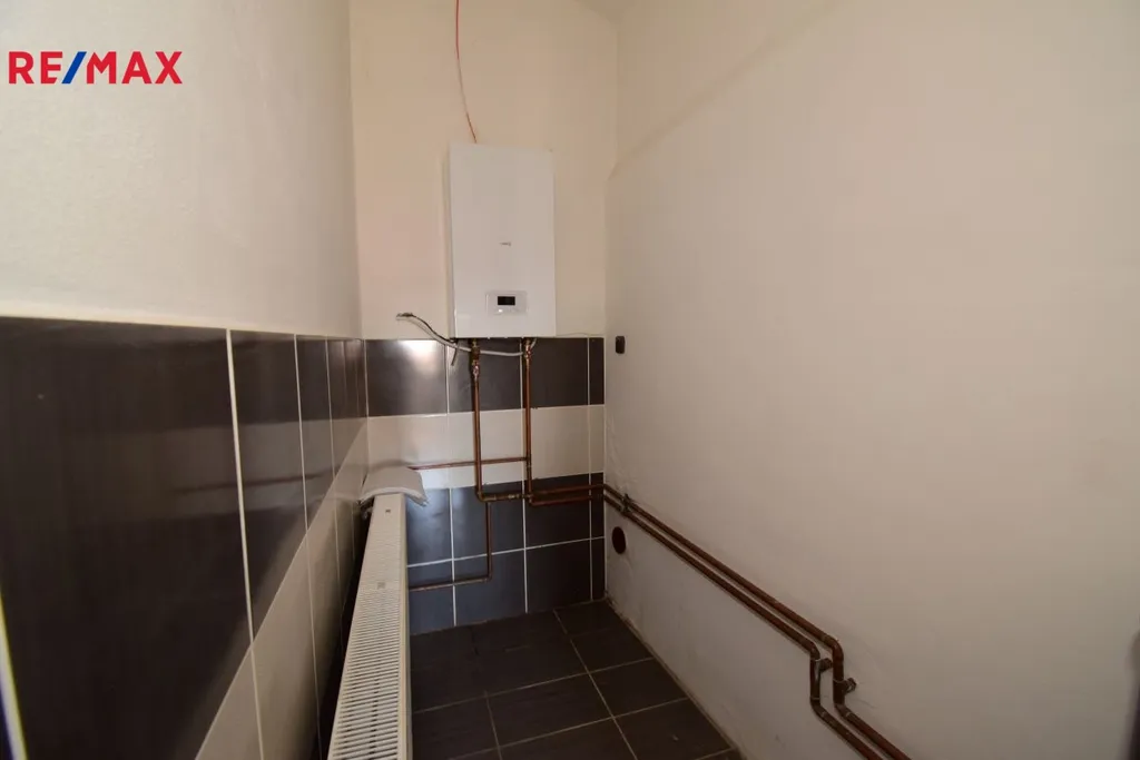 2) 2+1 se vstupem ze dvora, za vchodovými dveřmi je předsíň, za ní dále hala, kde jsou postupně vstupy do komory, koupelny se sprchovým koutem a WC, ložnice a obytné kuchyně a z ní dále do obývacího pokoje. Oba byty mají samostatné vytápění elektrokotli s rozvodem do radiátorů.