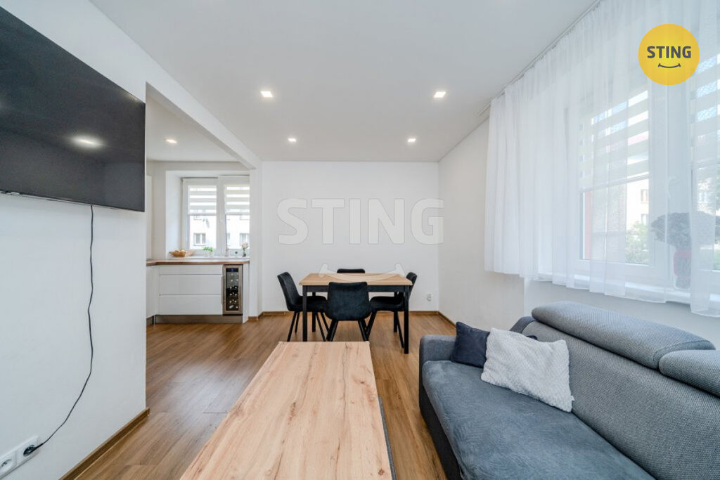 Dispozice bytu je řešena moderně a vzdušně – prostorný obývací pokoj s kuchyňským koutem, dvě samostatné ložnice, koupelna s vanou, umyvadlem se skříni a zrcadlem, toaleta a dostatek úložného prostoru. V rámci rekonstrukce byly provedeny nové rozvody elektřiny, vody a odpadů, nové podlahy, omítky, interiérové dveře i moderní kuchyňská linka na míru.
