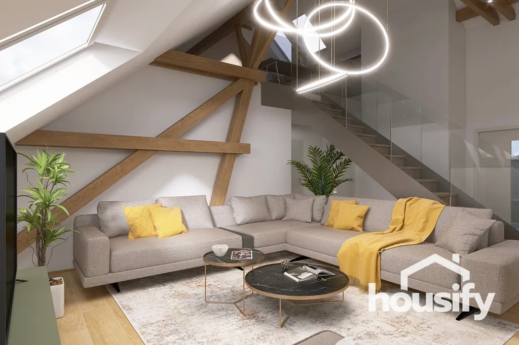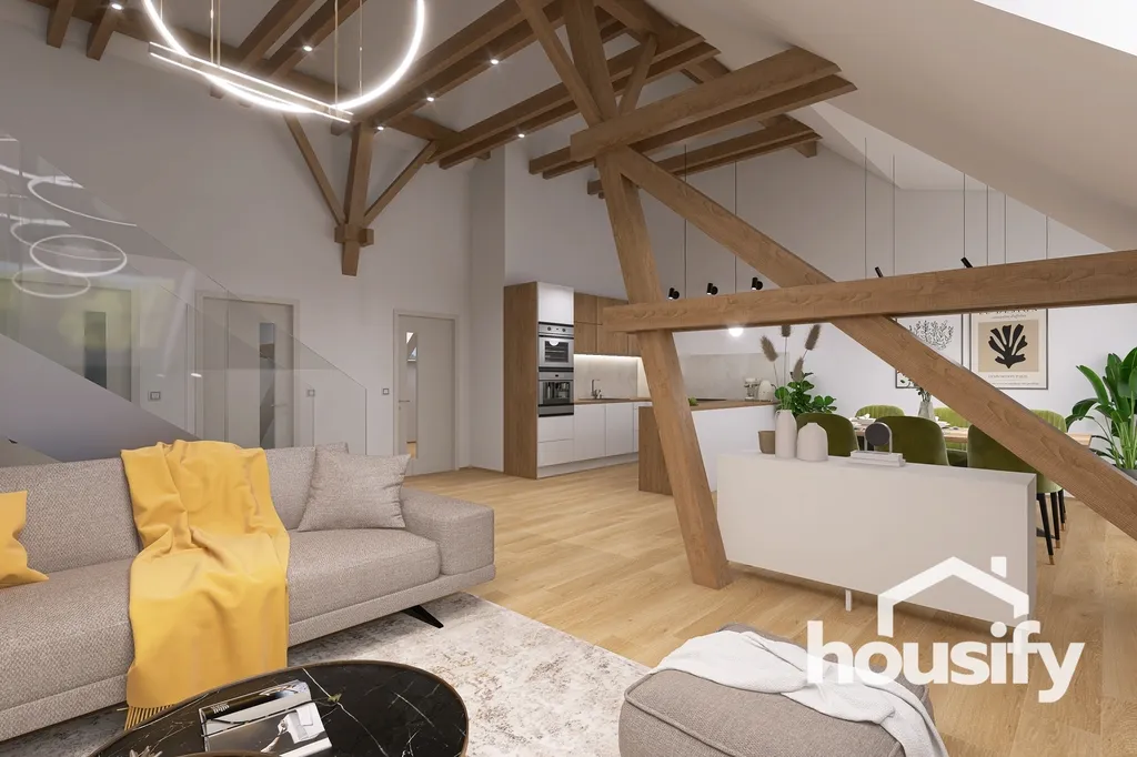 - Prosvětlený loft s přiznanými trámy