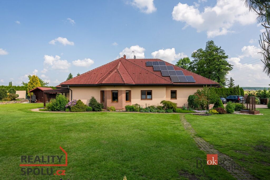 Rodinný dům o dispozici 5+kk a podlahové ploše 221,5 m², dokončený a zkolaudovaný v roce 2008, stojí na prostorném pozemku o rozloze 2 293 m².