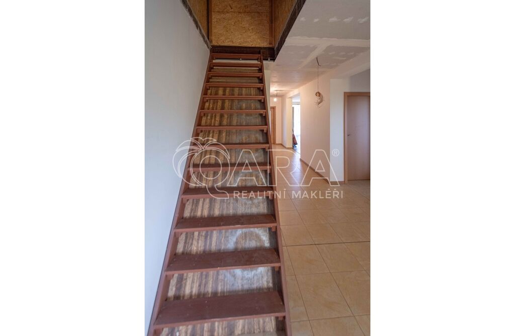 • Na podlaze kombinace dlažby a plovoucí podlahy. Kuchyňská linka včetně vestavných spotřebičů: el. trouba s indukční deskou, digestoř, myčka.
