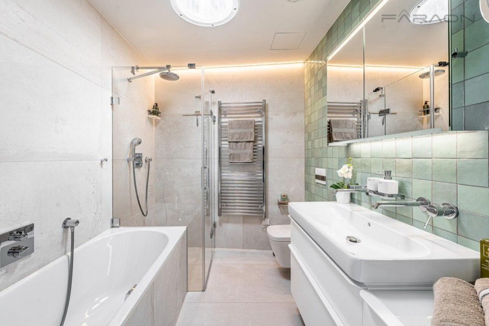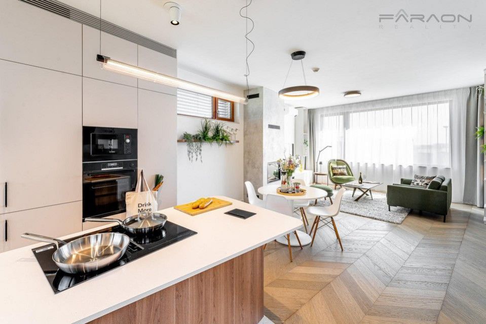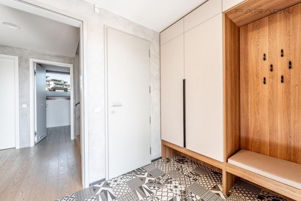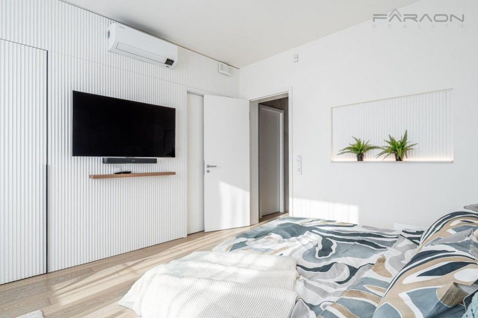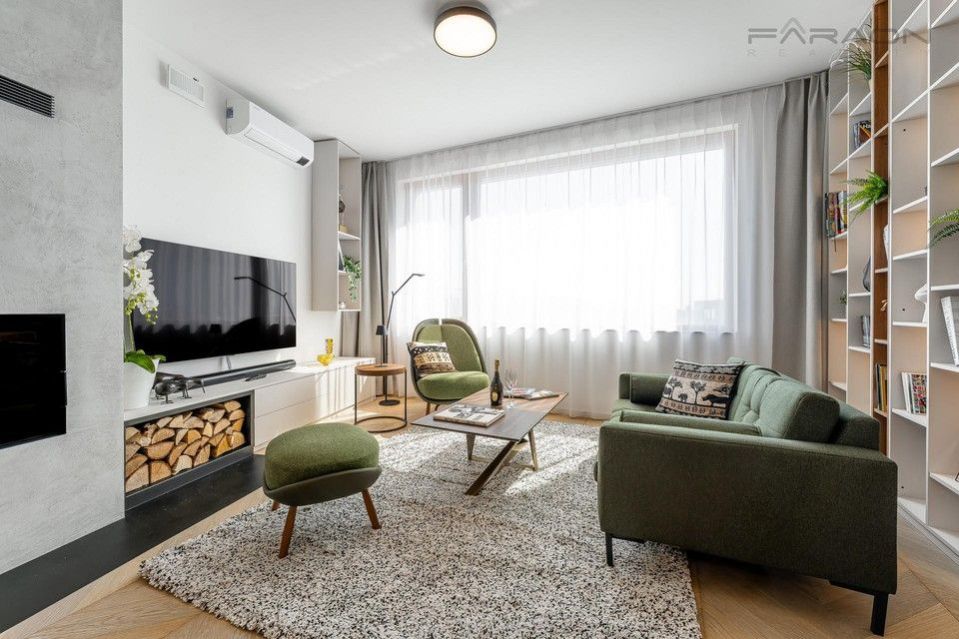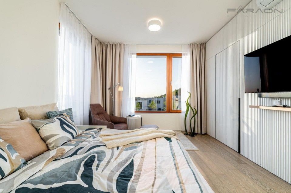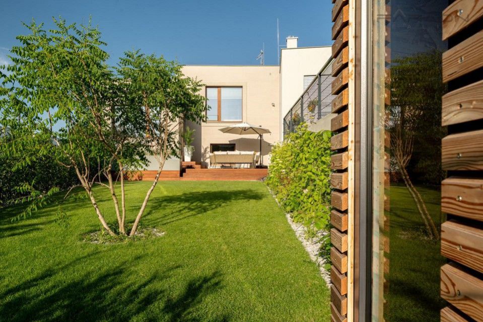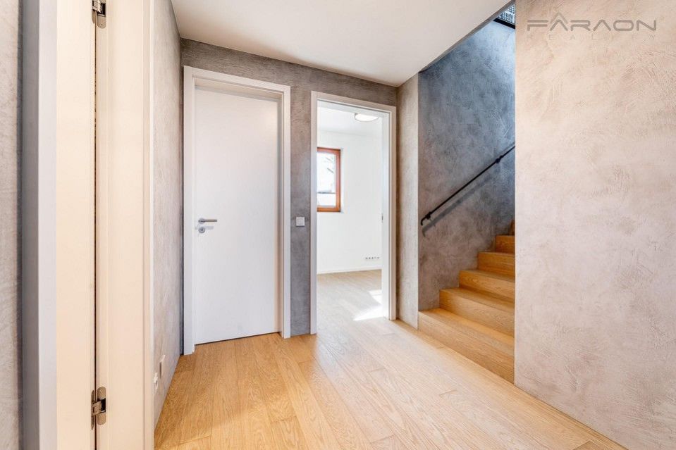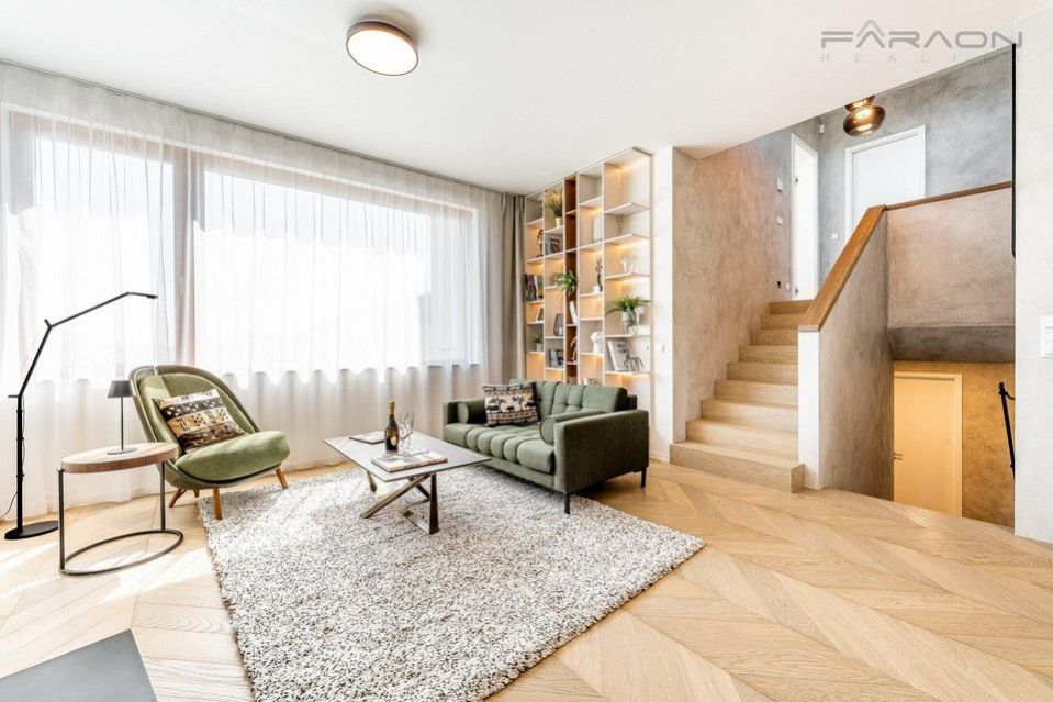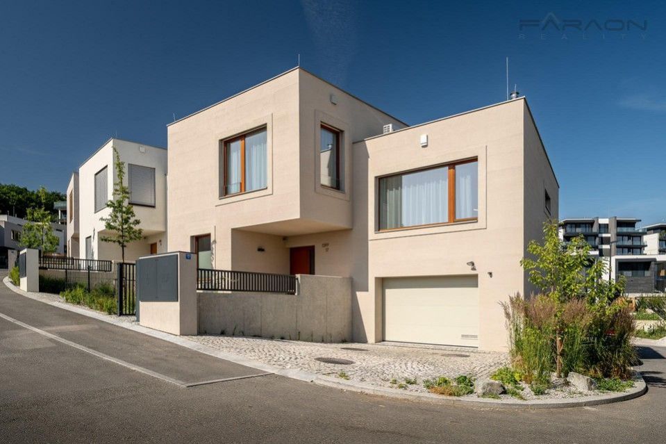 Pronájem nyní dokončeného a částečně zařízeného rohového řadového rodinného domu 5+kk (182 m2) na pozemku (335 m2) umístěného v žádaném rezidenčním projektu Top Rezidence Na Pomezí s výbornou dostupností do centra města a zároveň v sousedství lesoparku Košíře-Motol, rozhledny Cibulka a přírodní rezervace Vidoule . Unikátní rodinný dům disponuje nejmodernějšími technologiemi, které zvyšují komfort bydlení. Jedná se zejména o digitální systém chytré domácnosti Loxone, klimatizaci v celém domě, rekuperaci, centrální vysavač, exteriérové žaluzie, bezpečnostní zabezpečení, vlastní plynový kotel, robotická sekačka na zahradě, fotovoltaika na střeše domu, nabíječka pro elektromobily. V ceně pronájmu zahradník (4x ročně údržba, pokaždé pletí a hnojení, 2x ročně vertikutace trávníku, 2x ročně střih keřů, na jaře nastavení závlahy, na podzim zazimování, správa zavlažování prostřednictvím Loxone)