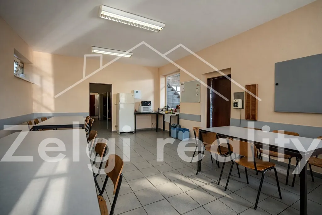 Součástí objektu je rozsáhlá výrobní hala o ploše 857 m², navazující skladovací prostor 230 m², administrativní zázemí s kancelářemi 105 m² a kompletní sociální zázemí 105 m². Pro technologické nebo speciální provozy je k dispozici také samostatná místnost o ploše 23 m².