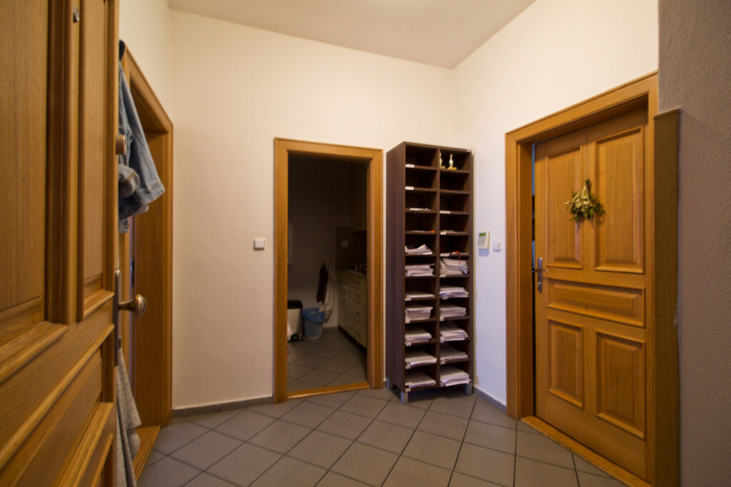 Pronájem kancelářských prostor o podlahové ploše 56 m² v Radyňské ulici v Plzni na Slovanech. Kanceláře jsou v 1. patře cihlového domu. Jedná se o 3 kanceláře. Kancelářské prostory jsou vybaveny i vlastní kuchyňkou. Z chodby je přístup na dámské a pánské WC.