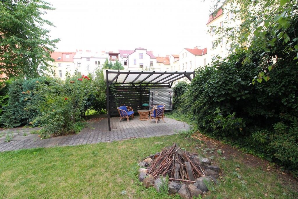 Možnost využívání společného zahrady s posezením za domem.
