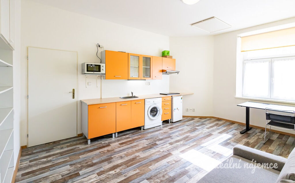 K dlouhodobému podnájmu nabízíme velmi světlý byt o dispozici 1+kk na hranici Vinohrad a Vršovic.