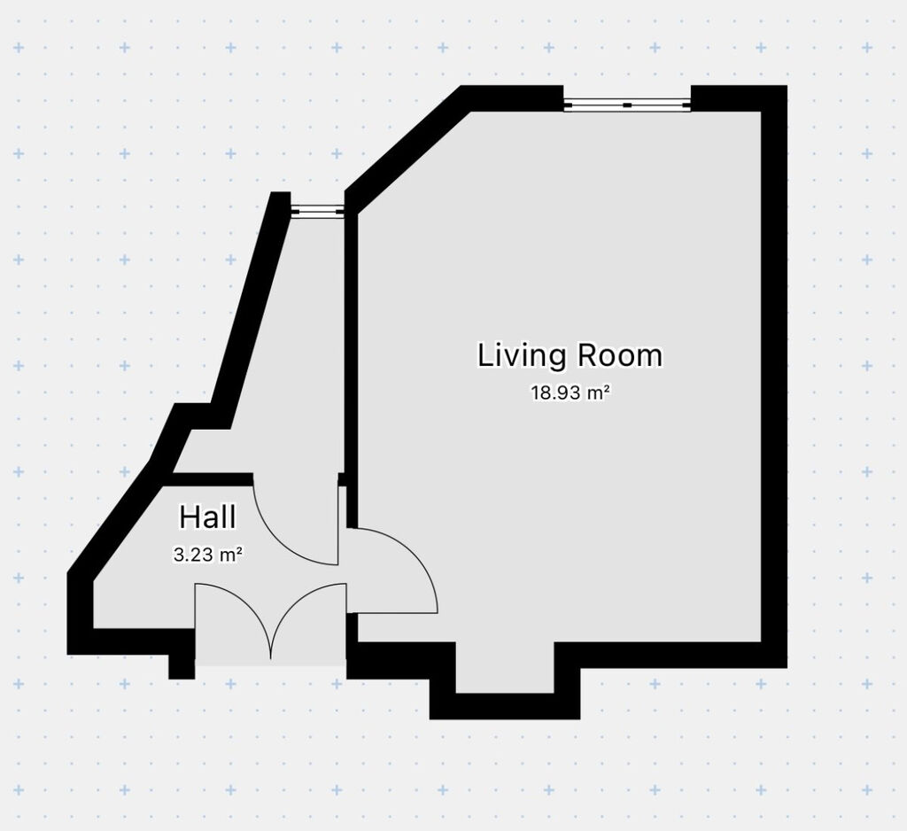 Skládá se ze vstupní chodby, koupelny zařízené sprchovým koutem, umyvadlem a toaletou a obývacího pokoje (19m2) společného s kuchyní.