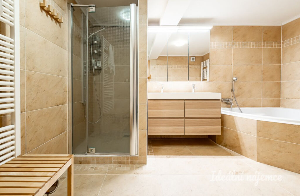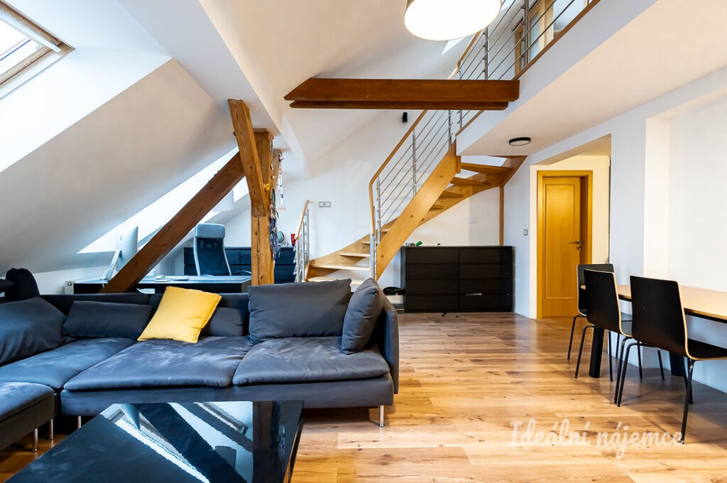 K podnájmu nabízíme krásný, moderní mezonetový byt o dispozici 3+KK a rozloze 128 m², umístěný v pátém patře žádané lokality Anděl na Praze 5. Byt je kompletně vybavený a nabízí prostornou dispozici zahrnující velký obývací pokoj, velmi dobře zařízenou kuchyň, dvě ložnice a dvě koupelny. Díky střešním oknům je v bytě dostatek přirozeného světla, ale bez ruchu světel z ulice.