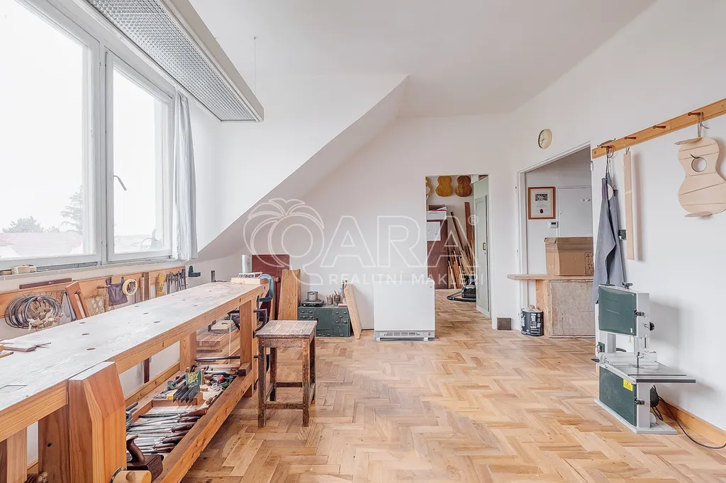 V prvním patře jsou dva byty aktuálně užívané jedním majitelem, oba byty mají přístup na zelenou střechu užívanou jako terasa, ze které lze sestoupit do navazující zahrady. Dispozičně se jedná o byt 3+1 (83,5 m2), který byl v roce 2009 kompletně rekonstruován včetně el. rozvodů, a dále byt 2+kk s balkonem (51 m2).