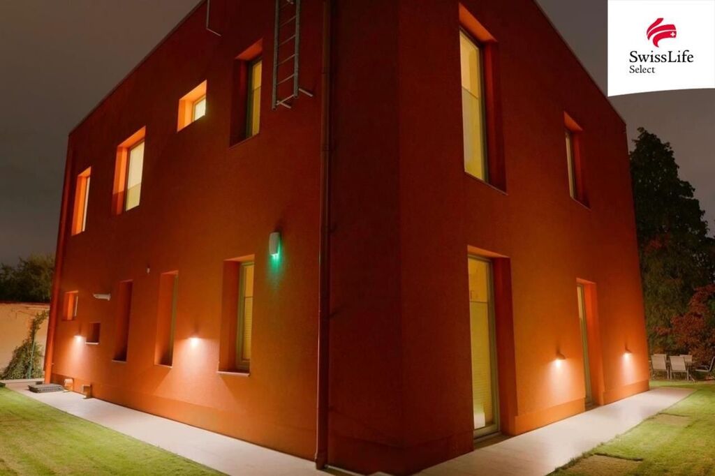 Důmyslně vymyšlená dispozice domu a jeho umístění v krásné zahradě, žádný satelit, ale propojení s přírodou v blízkosti centra Prahy.