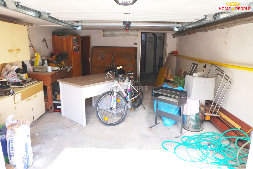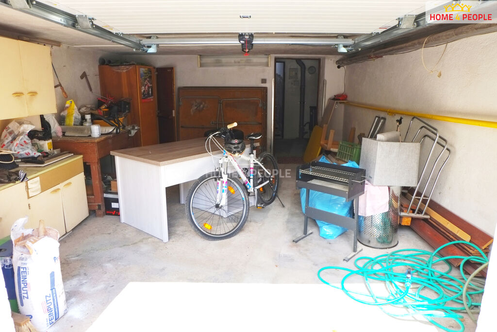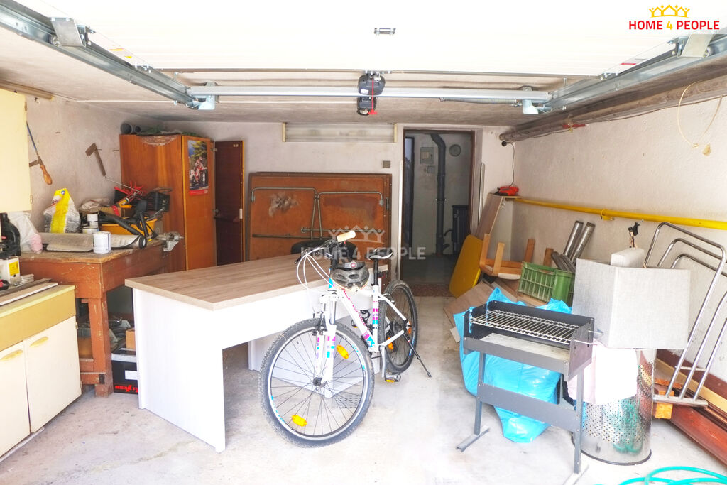 Součástí domu je i garáž, sklep a další skladovací prostory a zahrada za domem, která nabízí příjemný výhled do okolní přírody. Nemovitost se nachází ve slepé ulici, což zajišťuje naprostý klid a soukromí.
