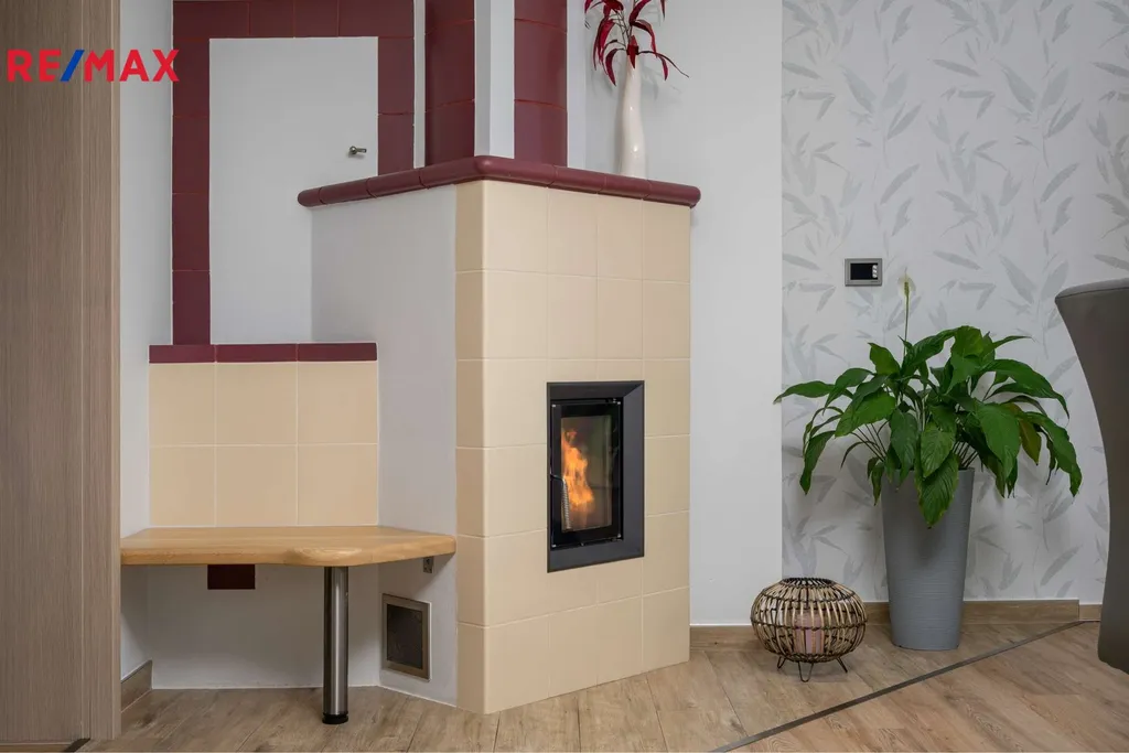 • kachlová kamna, která naplňují obývací pokoj sálavým teplem