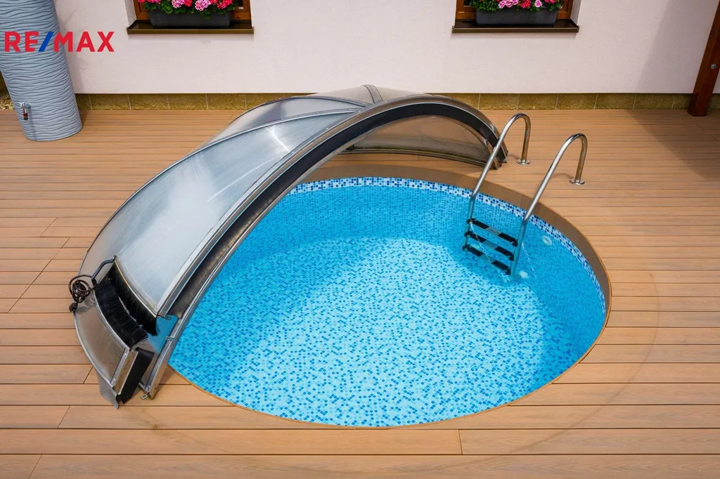 Zahrada nabízí nejen klid a pohodu pro relax, ale i samostatnou část se skleníkem pro pěstování rostlin a ovocných stromů, kde se můžete oddávat aktivnímu zahradničení. V zahradě je také zahradní domek se samostatným posezením a grilem. Pro Vaše vozy můžete využít kryté parkovací stání přímo u domu. Každý kout prostoru působí harmonicky – jako místo, kde se rádi zastavíte po dlouhém dni.